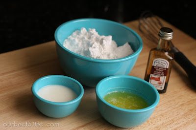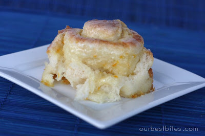 While the rolls are baking, whisk together a simple icing of powdered sugar, milk, and salt to glaze the finished rolls with when. Don't they look soooo yummy?? Baby of the delicious family.